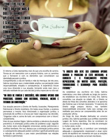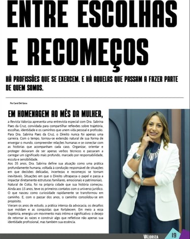Meus artigos e Colunas são pensados para orientar com precisão, traduzindo o jurídico em linguagem acessível, para que você tome decisões conscientes e seguras sobre o que mais importa: sua família, seu patrimônio e seu futuro.